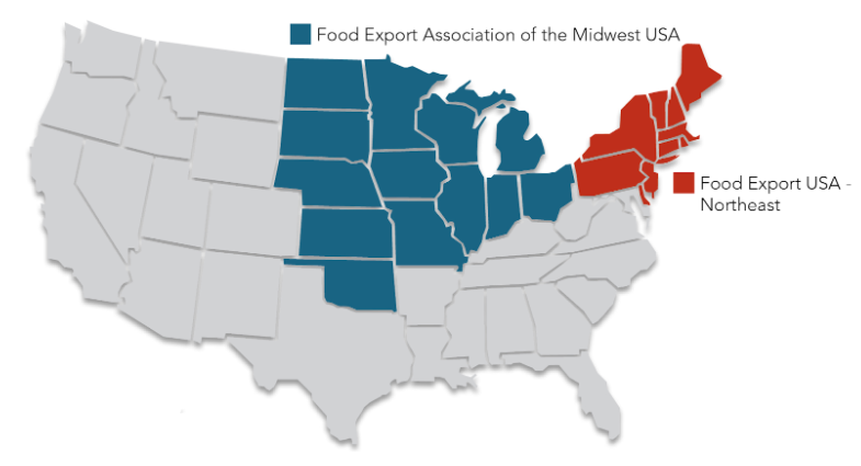 We are Food Export-Midwest and Food Export-Northeast, non-profit organizations made up of agricultural promotion agencies from 13 Midwestern and 10 Northeastern states. We exist to provide the support U.S. companies need to enter international markets by offering export education, global connections, export strategies, and marketing financial assistance.
